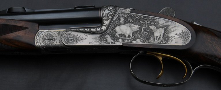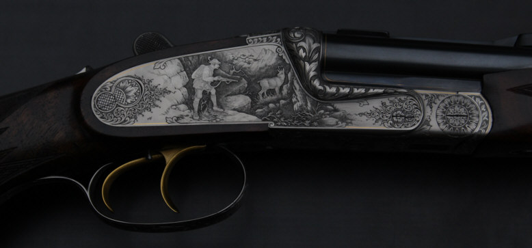 | Heym Seitenschloss Doppelbüchse 88B, klassische Jagdszenengravur nach Wunsch. | ||