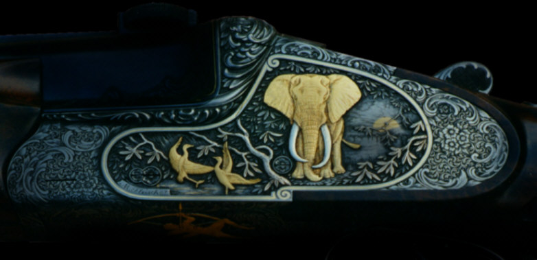Gravur: Elefant in Gold mit Silberstoßzähne