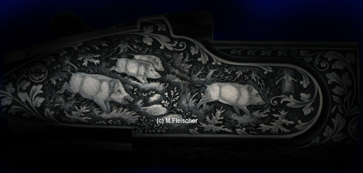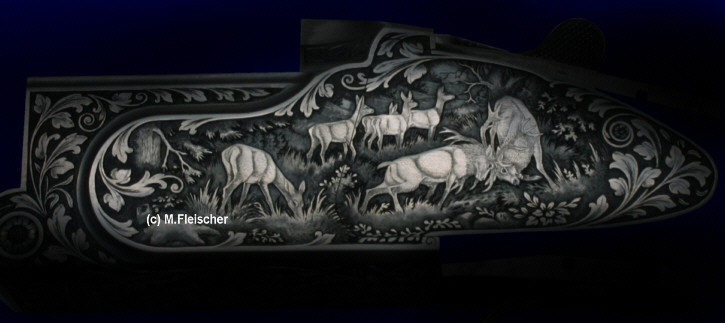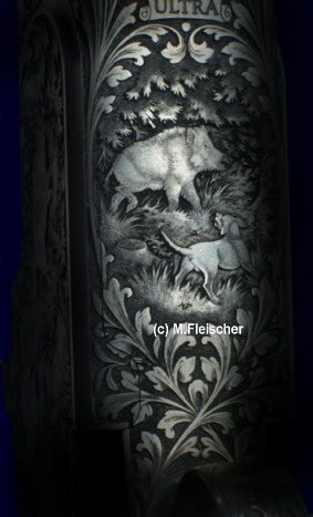 Tiefgestochene Gravur mit altdeutschen Laubornamenten