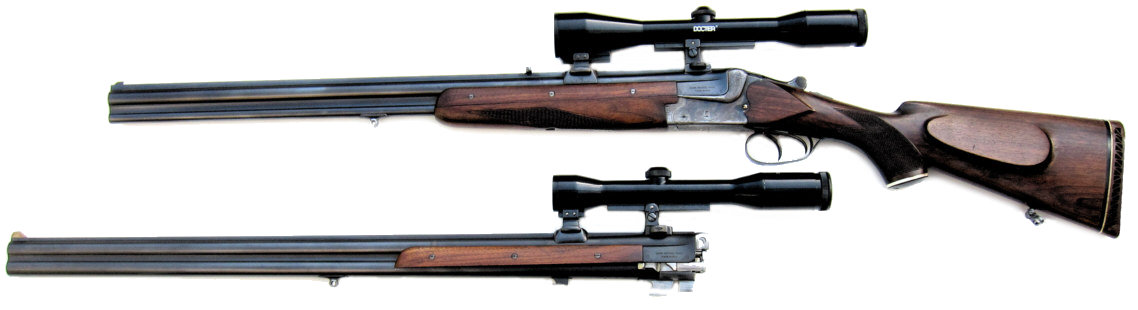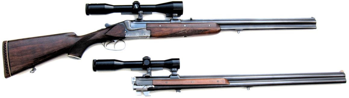 Bockdoppelflinten-Wechsellauf mit Ejektoren und Ziehlfernrohr, Zeiss Jena 4x32 Abs. 1 auf Suhler Einhakmontage | |
